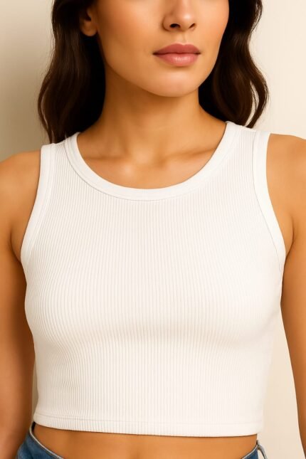 Material: 95% Cotton 5% Polyster, Fabric: Ribbed Pattern: Solid Sleeves: Sleeveless , Neck: Roun Neck Fit Type: Slim Fit, Closure: