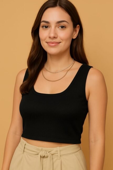 Women’s & Girls Solid Ribbed Slim Fit Crop Tank Top